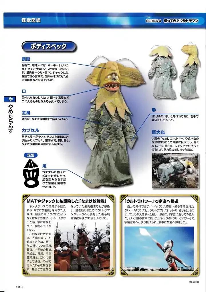 来自亚美坦拉斯行星的怪兽,身体能辐射出让人变得懒惰懈怠的奇异放射能,并且以人的懒惰能源为食而极速巨大化,本来善良的性格在巨大化过程中逐渐暴躁,对地球造成危害。最后被杰克奥特曼使用奥特手镯的缩小能力变小后,扔回了宇宙空间。