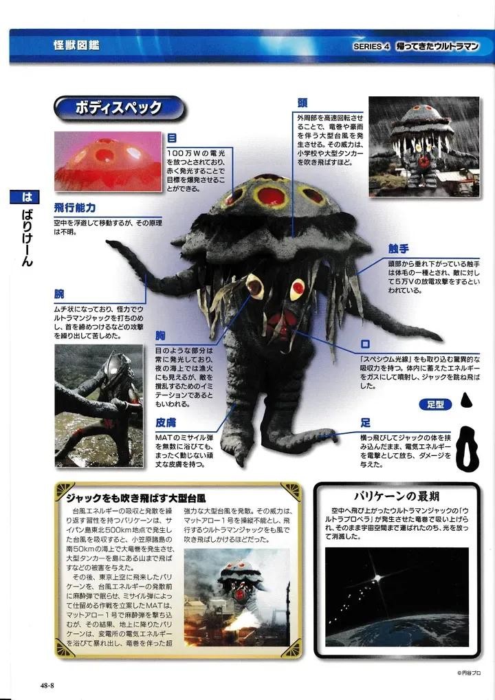 各地发生的台风的中心的怪兽。最大武器是头部旋转发起的巨型台风,双手的触手也是强力的武器,可以卷住对手再进行鞭打。脚部夹住敌人时也可以使出放电攻击。头部的红色发光器官可以发出让目标爆炸的闪光。口中除了发射毒气以外,还吸收了斯派修姆光线。最后被杰克奥特曼带往宇宙中粉碎。
