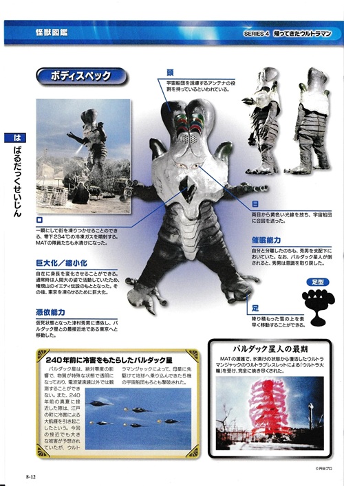 巴尔达克星人,从240年运行接近地球一次的巴尔达克星派出的尖兵,附身于探索雪人的津村秀男来到东京,并呼唤巴尔达克星的舰队发动进攻,能从口中吐出极低温的冷冻气体,欲冰封整个东京。乡变成杰克奥特曼与其交战,但巴尔达克星人喷出的冻气一度让杰克奥特曼也陷入苦战。在化解了冰冻后,杰克以手镯变化的奥特火轮将巴尔达克星人熔化。