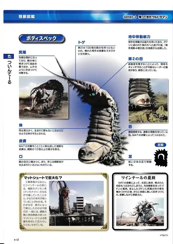 记载于1971年的防卫队MAT队档案中有记录。是出身地球的古代怪兽,天敌肉食地底怪兽古敦的捕食对象。早在侏罗纪时期,古敦和双尾怪就是经常发生战斗的死敌,双尾怪经常用麻醉毒液从战斗中脱逃。最初以石卵的形态出现于东京的某个建筑工地,后再次被施工队掩埋,在城市地下变大并破土而出,引发地震,将秋子一行人埋在地下,随后孵化破壳而出,乡为了保护秋子变身为杰克奥特曼与其交战,和古敦前后夹击打败了杰克,后来第二次与杰克作战时被古敦咬死。