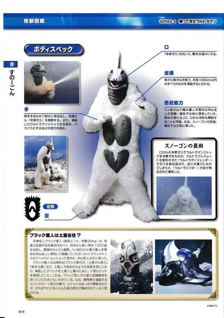 来自布莱克星,是被布莱克星人操纵的怪兽,化身雪女的姿态,从口中喷出冷冻气体将年轻男女冻结。曾一度将杰克奥特曼也冻成冰人,并将其身体四分五裂。但杰克奥特曼因奥特手镯的特殊能力而复活,并使出「奥特盾牌」将斯诺格的冷冻气体反弹,斯诺格遭自己的冷冻气体冻结后又被杰克的奥特升降投飞,摔成碎片。
