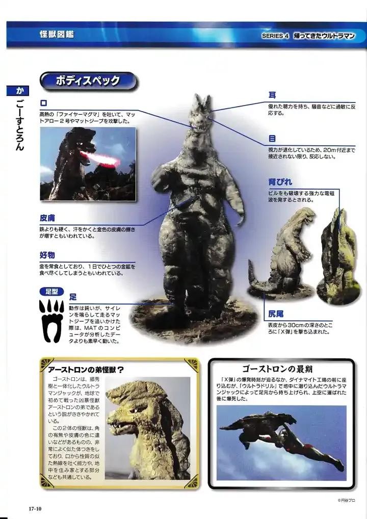 在大杉谷地带出现的小型地底怪兽,视力退化、但听觉相对地异常发达,每日的活动范围约在20公里左右,虽是肉食性怪兽但性格十分迟钝和慵懒。MAT为防止其作恶而打算用X弹主动出击,但因乡秀树的误操作导致X弹被设置定时时限而没有立刻引爆,哥斯特隆更挟带X弹来到炸弹工厂,对东京地区造成严重威胁和恐慌。最后被杰克奥特曼带到宇宙中引爆。