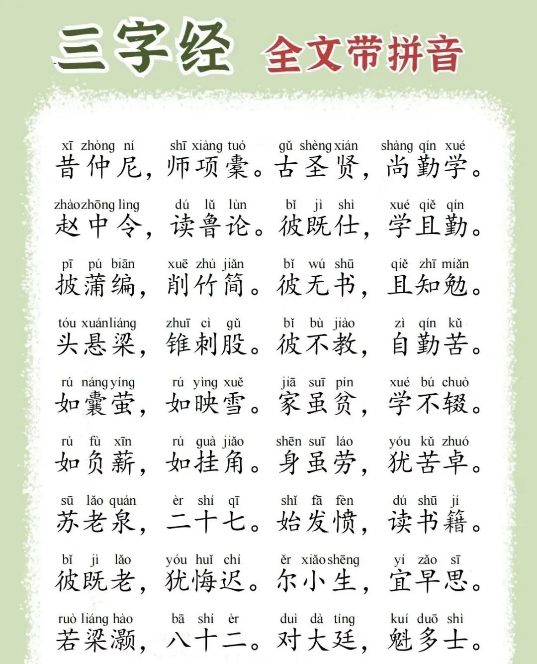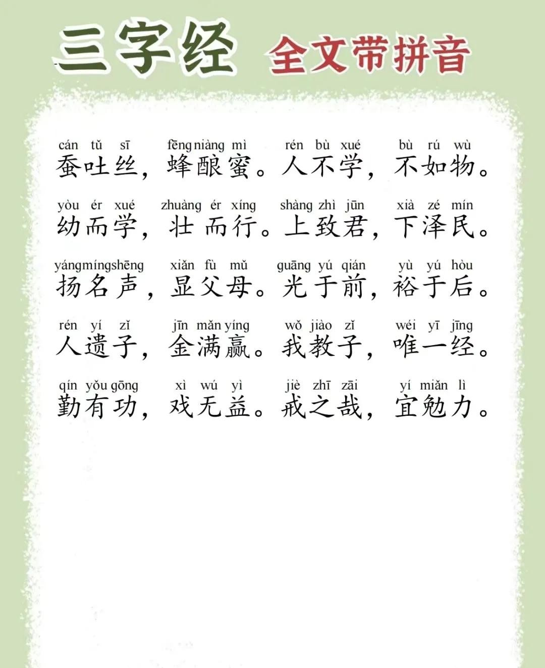 《三字经》全文带拼音 2026-01-14 13:03 点击: 来源:高饶网 摘要:《三字经》全文带拼音 《三字经》全文带拼音 相关标签: 上一篇:霸气无比的赵子龙满背纹身,帅气威武 下一篇:2019年中国百强县名单出炉!东营这个县上榜
