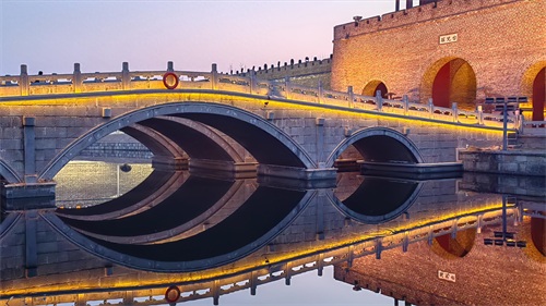 台儿庄古城是一座北方的水城,京杭大运河由此经过,曾被乾隆皇帝称为“天下第一庄”,游览下来要半天到一天时间。古城内有许多河道和拱桥,搭配着仿古建筑,夜景特别美丽。在这里还可以看到台儿庄大战洗礼后的房屋及各种精彩表演。