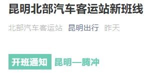 昆明⇋腾冲,昆明北部汽车客运站新开1条班线