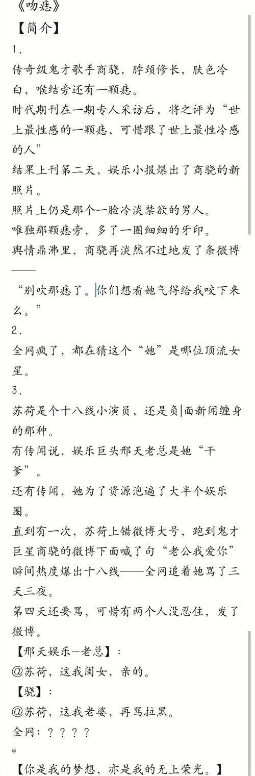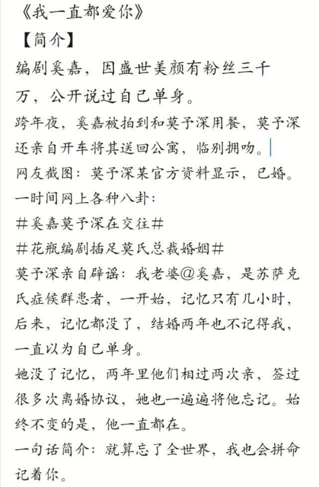 「婚后甜宠文」520来几本和《不二之臣》一样甜的婚后文 2026-01-16 11:58 点击: 来源:高饶网 摘要:「婚后甜宠文」520来几本和《不二之臣》一样甜的婚后文 今日书单: 1《许你娇纵》 2《我一直都爱你》 3《吻痣》 4《迟早要和大佬离婚》 5《你老婆掉了》 1.许你娇纵 2.我一直都爱你 「婚后甜宠文」520来几本和《不二之臣》一样甜的婚后文今日书单:1《许你娇纵》2《我一直都爱你》3《吻痣》4《迟早要和大佬离婚》5《你老婆掉了》1.许你娇纵2.我一直都爱你3.吻痣4.迟早要和大佬离婚5.你老婆掉了《我一直都爱你》是一部很温暖的小说,女主病得越来越严重的时候男主都没有放弃她,然后女主也很坚强,结局是好的 喜欢可看 相关标签: 上一篇:一组《陈情令》蓝忘机和魏无羡高清无水印壁纸,喜欢赶紧保存吧 下一篇:runningman九位成员高清图集