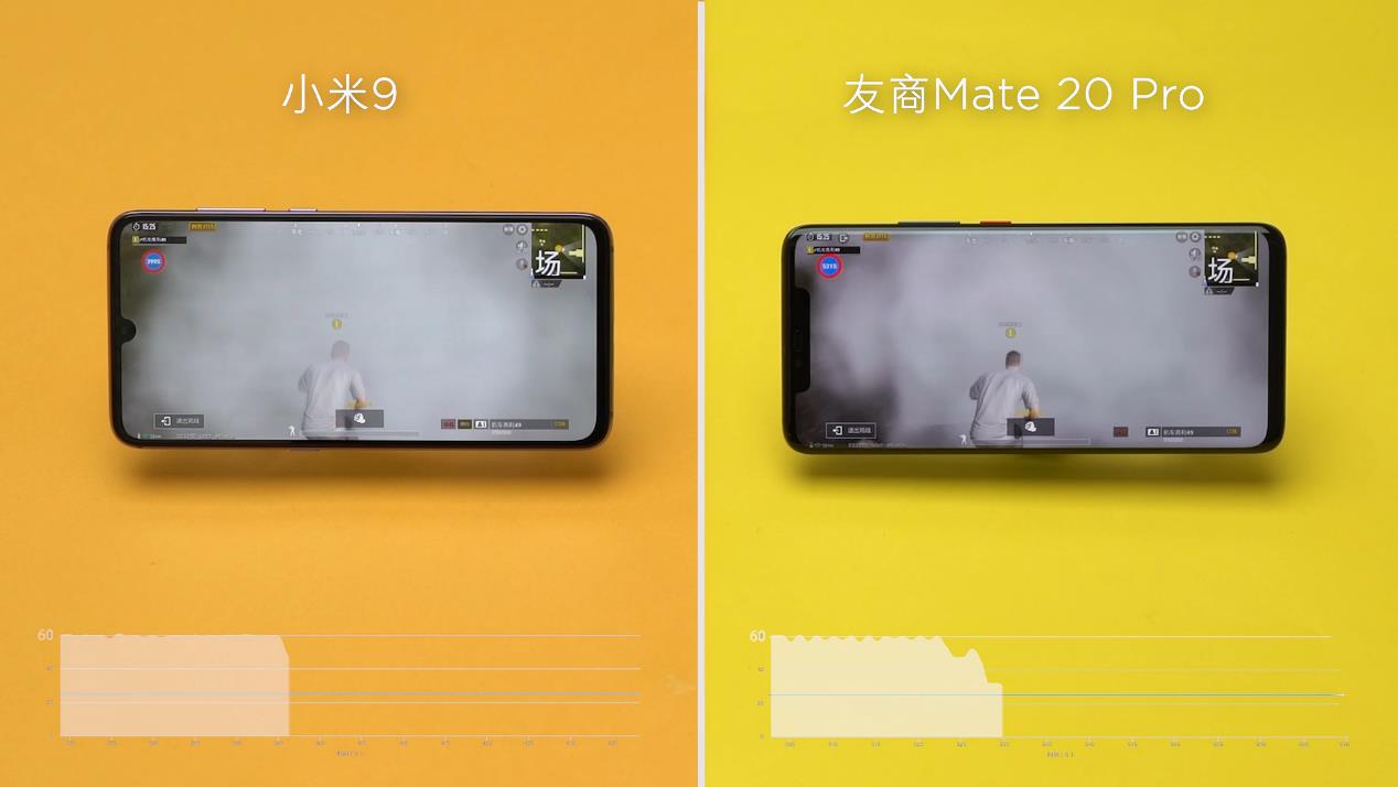 而吃鸡类游戏中,跳伞、开镜、投掷烟雾弹、燃烧瓶以及驾驶载具时画面变化较大,渲染负载偏重。在HDR高清画质下,开启极限帧数设置,连续投掷三颗烟雾弹,通过不断进出烟雾来测试极限场景下的游戏渲染表现。小米9和其他手机都出现了不同程度的帧率波动,不过小米9相对更加稳定,平均帧率55.8fps,而其他手机仅47.3fps。