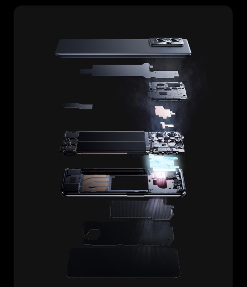 为了使得这颗骁龙8充分发挥满血性能,这次散热使用了新一代金刚石冰芯散热系统plus,可以有效增加散热效果,散热面积到达36761平方毫米,vc液冷散热面积也达到4129平方毫米,堆料也非常足,可以畅快的使用;
