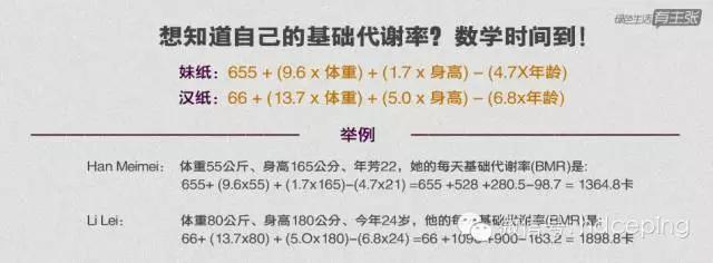 (BMR)是休息时机体工作所需的能量。它占一天中所消耗卡路里的大约60%到70%,包括维持心脏跳动、肺部呼吸、眼睑眨动和体温稳定所需要的能量。一般来说,男性的基础代谢率高于女性。
