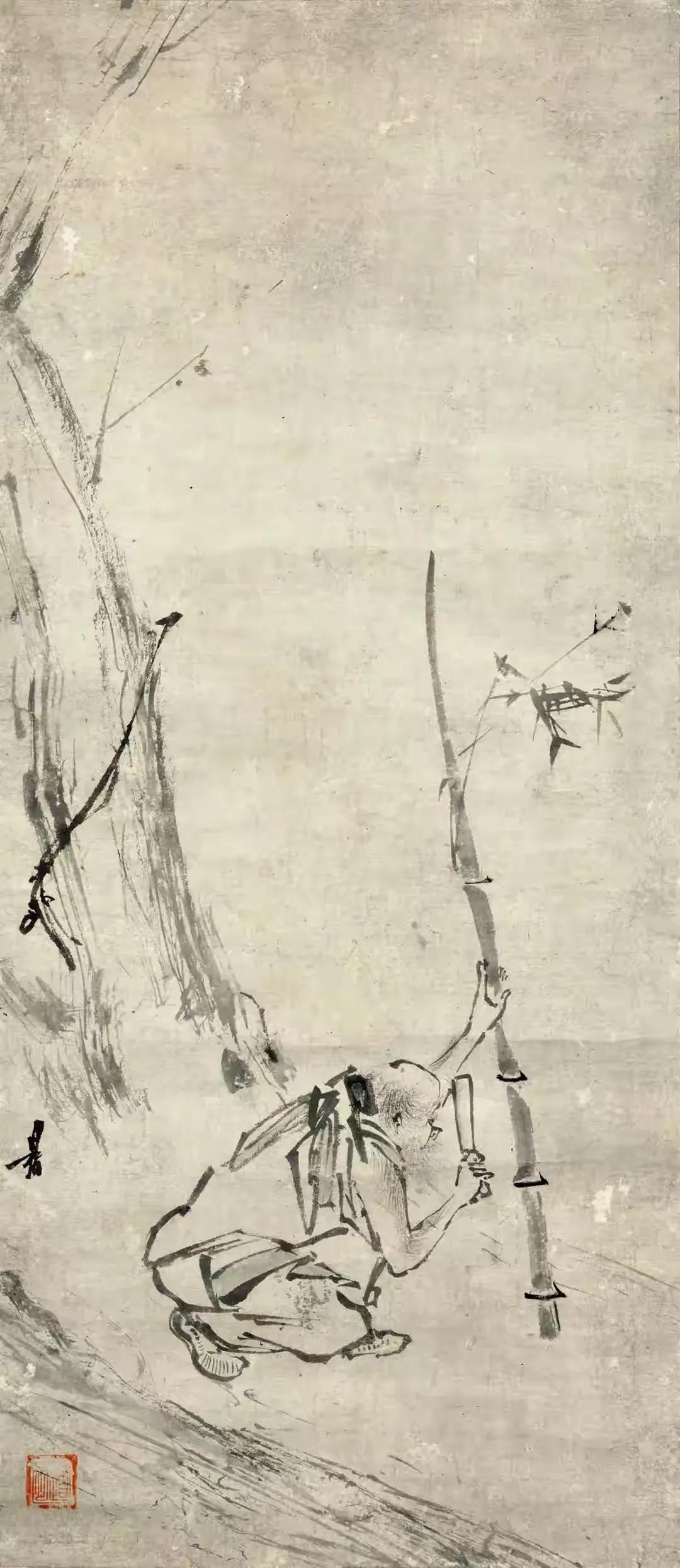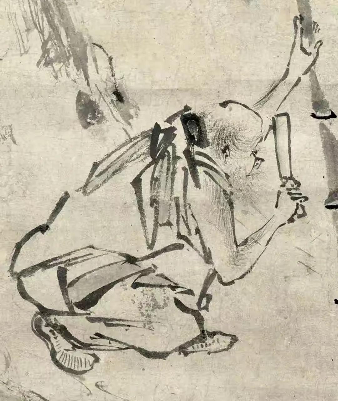其深受禅宗思想影响,其画作常以简逸之笔传达空灵意境。例如《六祖斫竹图》中,粗率的笔触与留白结合,暗合禅宗“直指本心”的顿悟理念,使画面超越形似,直抵精神内核。这种禅意表达,不仅契合南宋三教合流的思潮,更赋予其作品深邃的哲学意蕴。正如《图绘宝鉴》所评:“精妙之笔,皆草草,谓之减笔”,这种“草草”背后,实为对艺术本质的深刻洞察,使其成为中国绘画史上难以逾越的高峰。