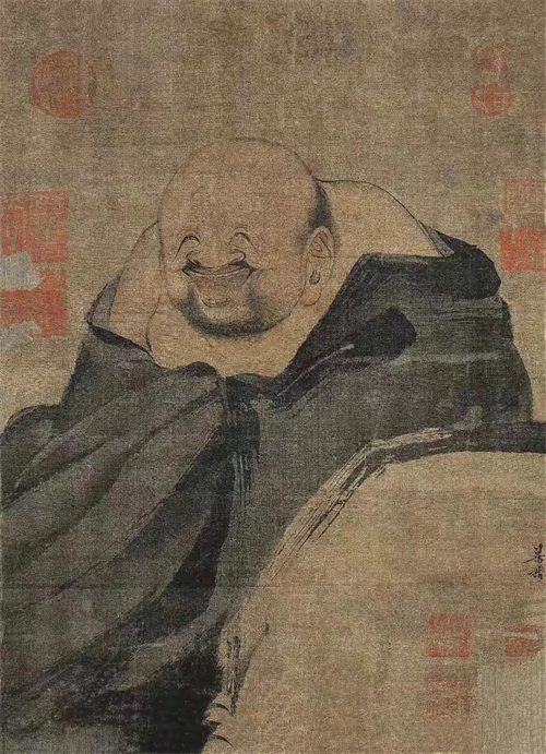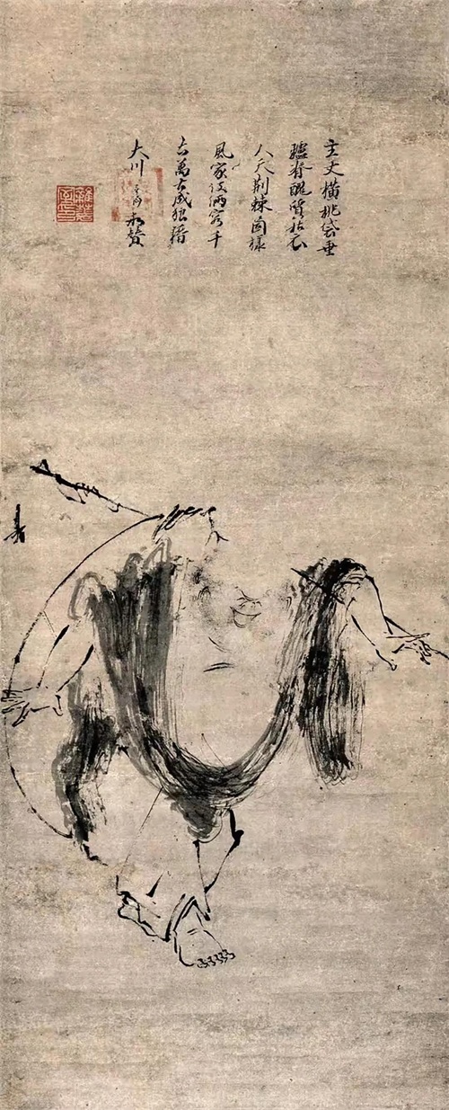 梁楷最大的贡献在于创立了“减笔画”和“泼墨画”两大技法。他摒弃了宋代院体画的精工细描,以极简的笔墨捕捉物象神韵,如《泼墨仙人图》仅用粗阔的墨块与寥寥数笔勾勒仙人醉态,却生动传神。这种“得意忘形”的手法,将中国画的写意精神推向极致,被后人誉为“大写意鼻祖”。