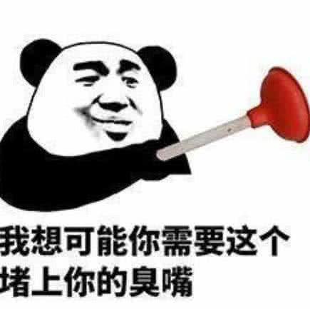 这张表情包堵嘴功力一级强,让大熊猫把他的嘴用皮搋子堵上,谁让他的嘴和马桶一样臭呢?必须这样治他,坚决不能忍这样怼你的家伙。
