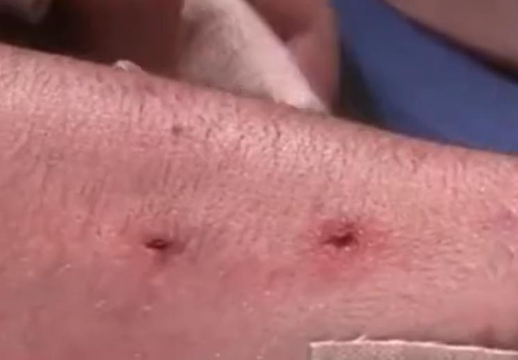 老外将自己 的手臂伸到了鳄龟的嘴里,鳄龟可没有嘴下留情,只见 它毫不犹豫的就将送到嘴边的手臂咬了下去,老外万万 没想到做了措施还被咬的这么疼,在实验之后,解下了 绷带的手臂上留下了清晰的伤口。
