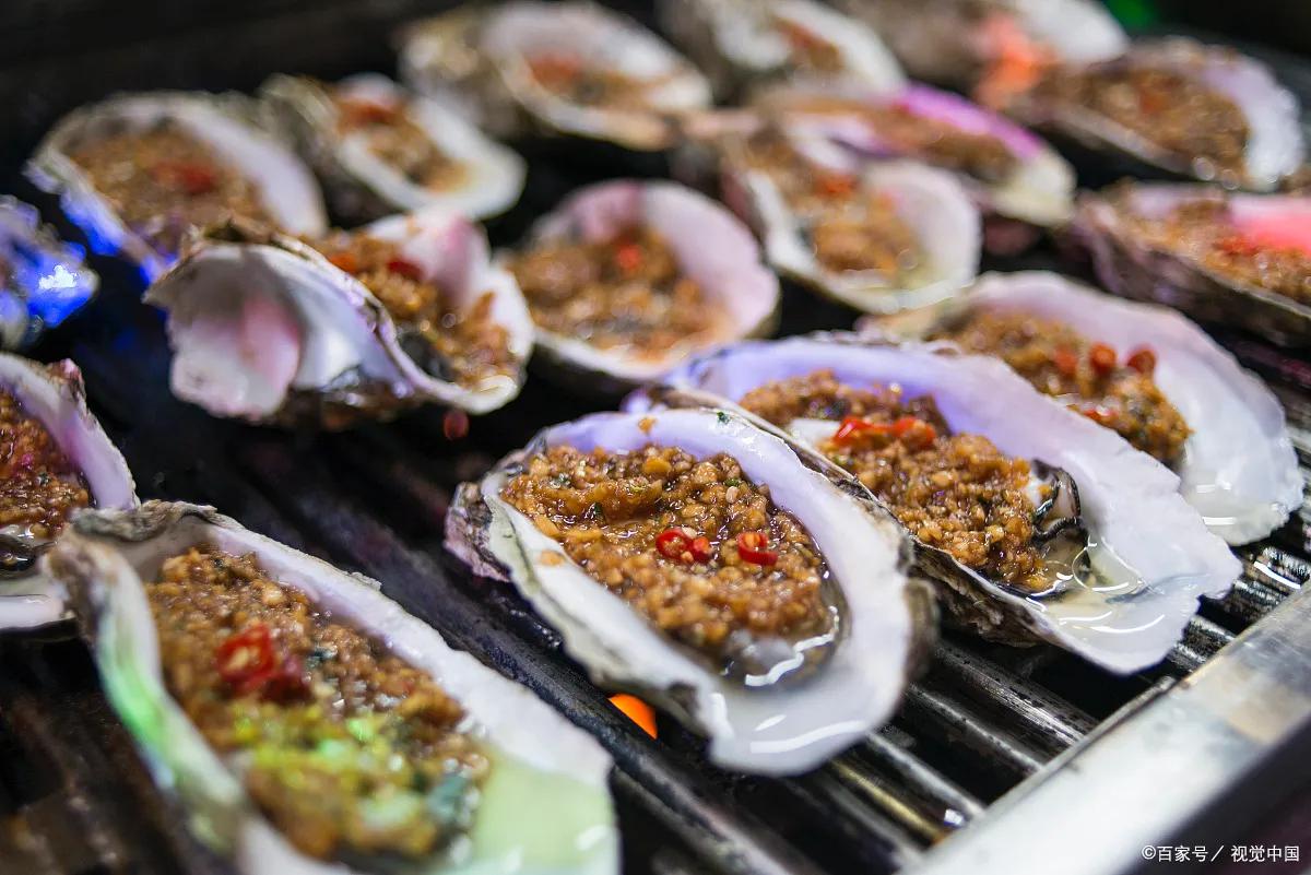 工作后,生蚝就是我们在宵夜每次必点项,最最最常见的就是烧烤的方法了。一个个肥白的生蚝,在师傅的巧手下,滋滋地烧烤着,淋上蒜蓉汁或者来一个野山椒口味的,一口一个,那绝对是赞!