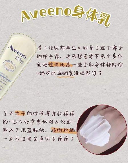 看我的前半生了这个牌子的护手霜,后来想着要不来个身体乳吧性价比高一些手和身体都能涂~妈呀这滋润度跟我的面霜差不多了 ~冬天太干的时候浑身就痒痒的~也不好意思和别人说默默入了深蓝瓶的,稍微粘稠一点不过用完真的不痒痒了~