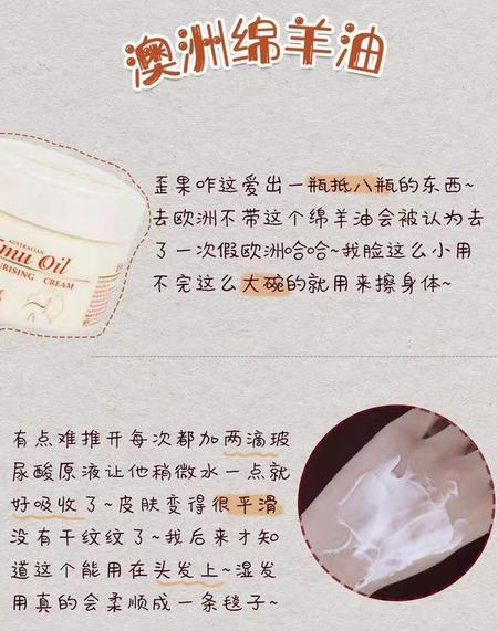 歪果咋这爱出一瓶抵八瓶的东西~去欧洲不带这个绵羊油会被认为去了一次假欧洲哈哈~我脸这么小用不完这么大碗的就用来擦身体~有点难推开每次都加两滴玻尿酸原液让他稍微水一点就好吸收了~皮肤变得很平滑没有干纹纹了~我后来才知道这个能用在头发上~湿发用真的会柔顺成一条毯子~