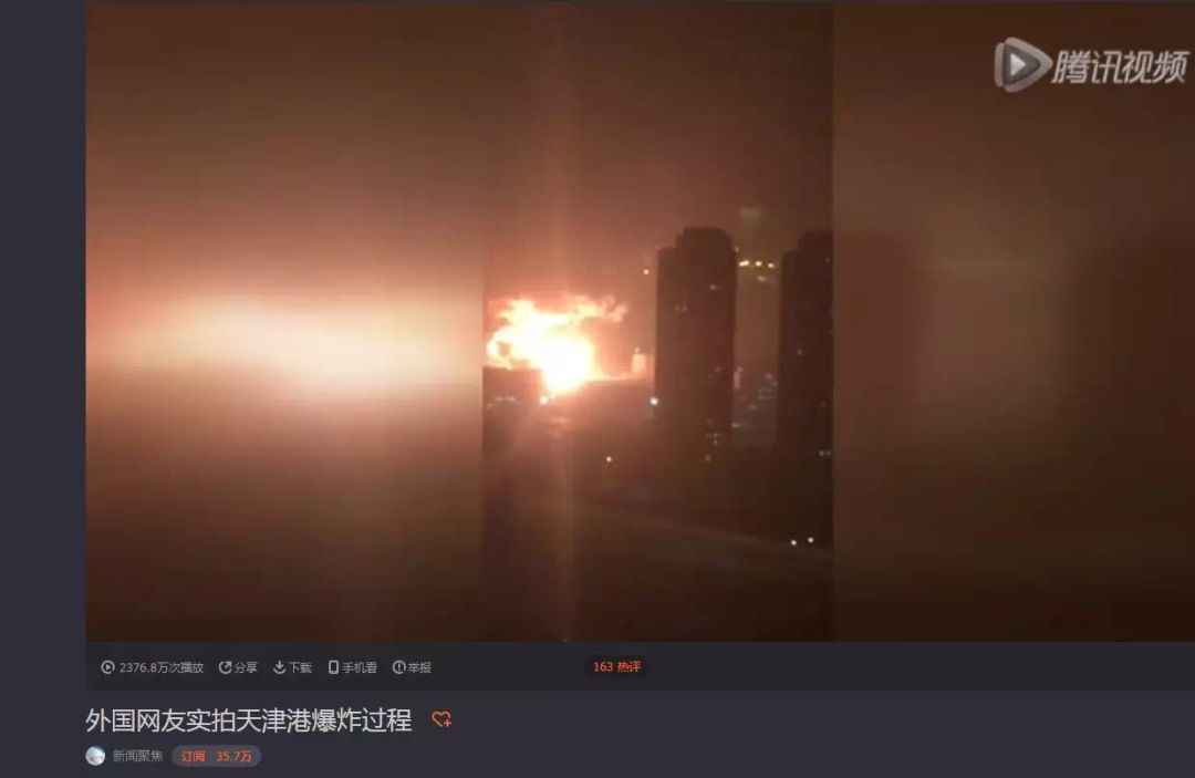 这条视频来自2015年“天津大爆炸事件”