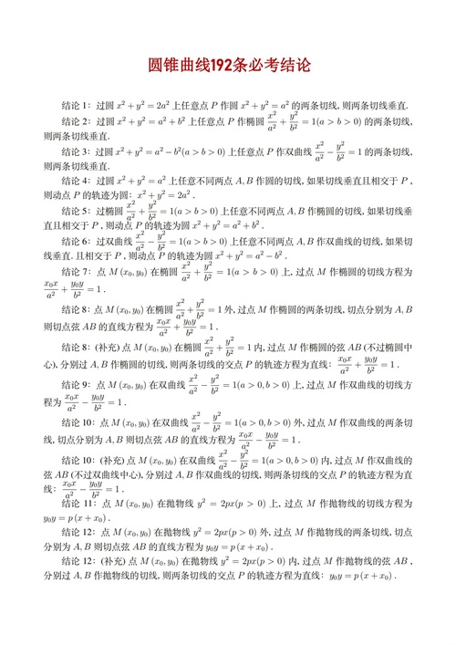 今天就把圆锥曲线的192条必考结论都分享给大家