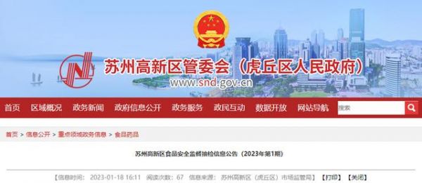 中国质量新闻网讯 近日,苏州高新区发布2025年第1期食品安全监督抽检信息。本期食品抽检合格率为100%,总体情况良好。