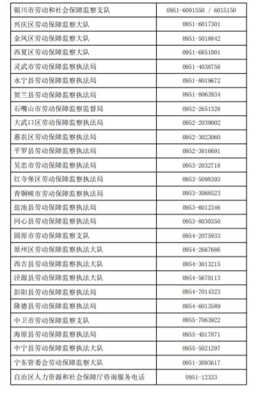 四、拨打全区劳动保障监察机构举办投诉维权电话(点击看大图)