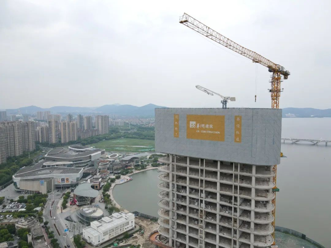 4月30日,由华润建筑华东分公司承建的无锡万象城二期项目写字楼喜结金顶,项目一批次总建筑面积5.38万m²,包括超高层写字楼1栋(42层)、消控室、变电所及地下室(2层)。