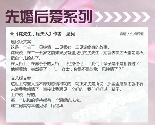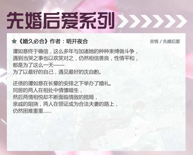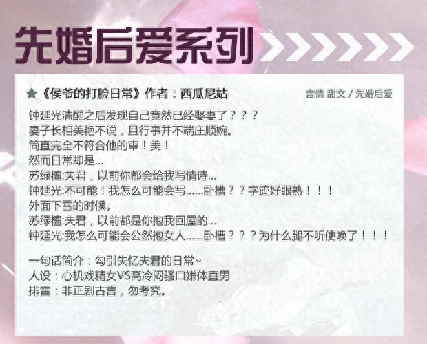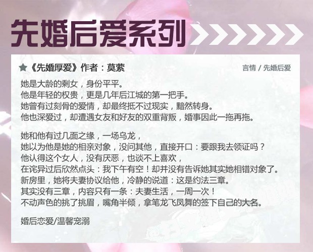 下面,就给大家盘点一波先婚后爱文系列,虐并甜着!