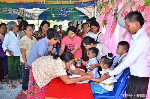7月30日,泰国素攀武里府一对父母依照泰国传统婚嫁仪式为3岁零6个月的龙凤胎举行了婚礼,邀请僧人诵经祈福和办喜宴,并为两个孩子准备40,449 铢现金及2铢重的金饰,只为能驱除厄运,保佑孩子健康成长。