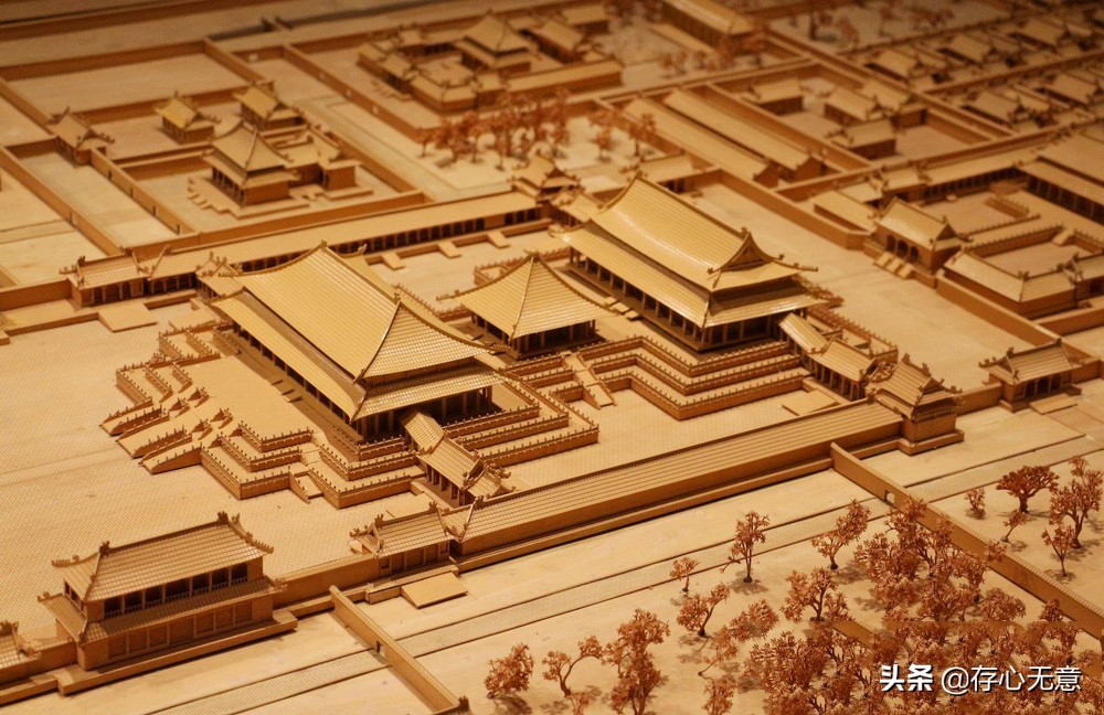 宫城的洪武门至承天门两侧为中央官署区,承天门至午门两侧为太庙、社稷坛;前朝以奉天殿、华盖殿、谨身殿为核心,东有文华殿、文楼,西有武英殿、武楼;后廷以乾清宫、坤宁宫为核心,东有春和宫,西有柔仪殿、奉先殿、大善殿、九五飞龙殿、西宫,两侧为东西六宫。
