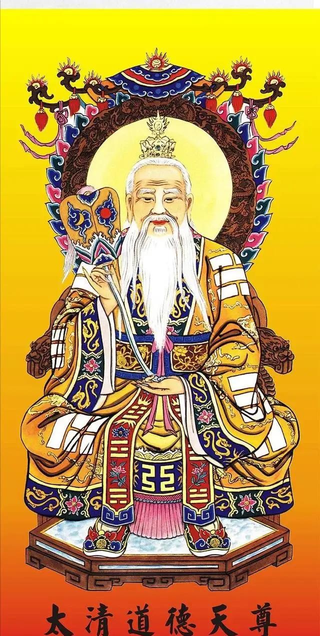 太上老君乃元气之祖,万道之祖,乾坤之本,天地之精,太无之中,凝自然之真而为体,广大无边,应化莫测,非阴非阳,能微能彰,不古不今,不存不亡,常于元旦劫运之端,太初、太易之前,肇布玄元始(指三清)而生太极,三清为老上老君所化的三位尊神。