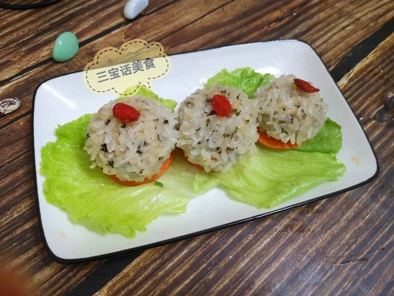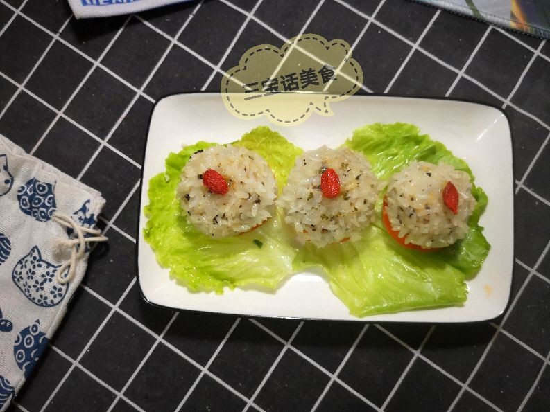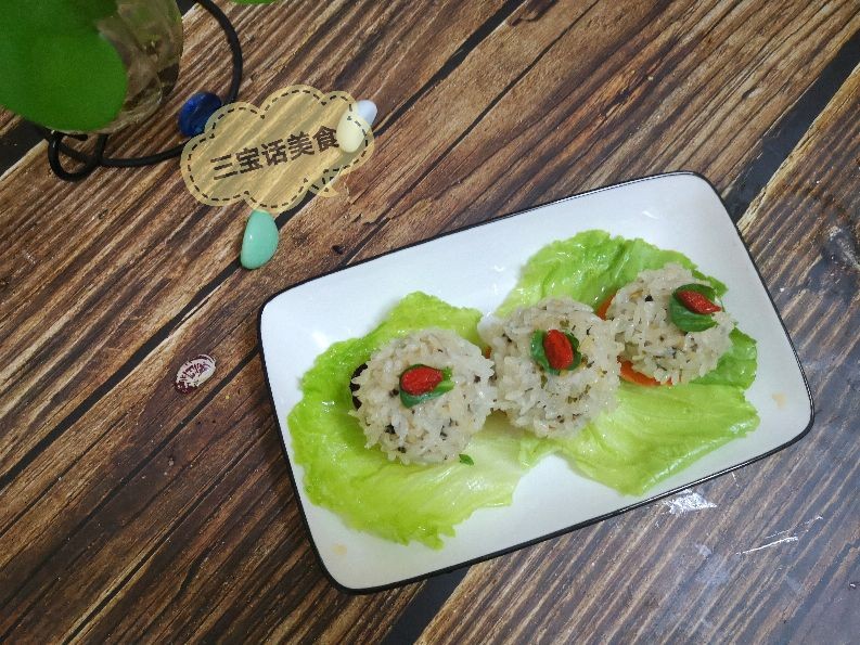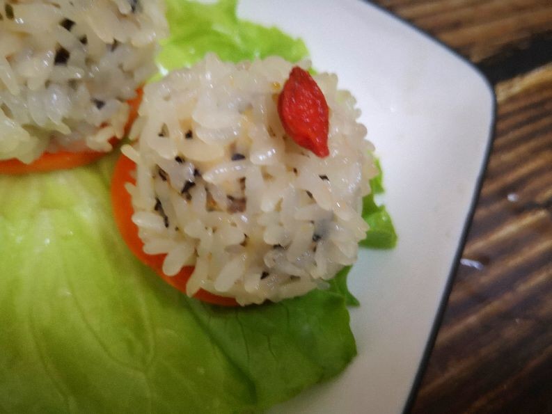 8. 时间到,关火出锅,白白胖胖的珍珠丸子出笼了,点缀上一点焯水后的枸杞子,我们的珍珠丸子就做好啦。