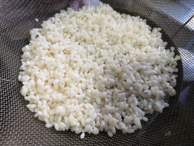 4. 提前一天晚上准备半碗糯米,冲洗干净后,倒入冷水里浸泡一夜,今天早上滤水后备用;