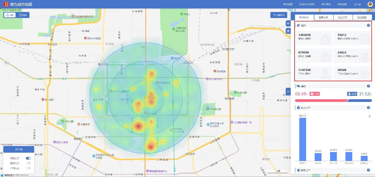 从客户画像上就能看出在这个地区的人口数量是较多的,并且从热力图上就能看出在这个地区的人口分布也是较为密集的。这就会在一定的程度上促进快餐行业的发展,尤其是对于餐饮行业来说人口才是发展的重点。