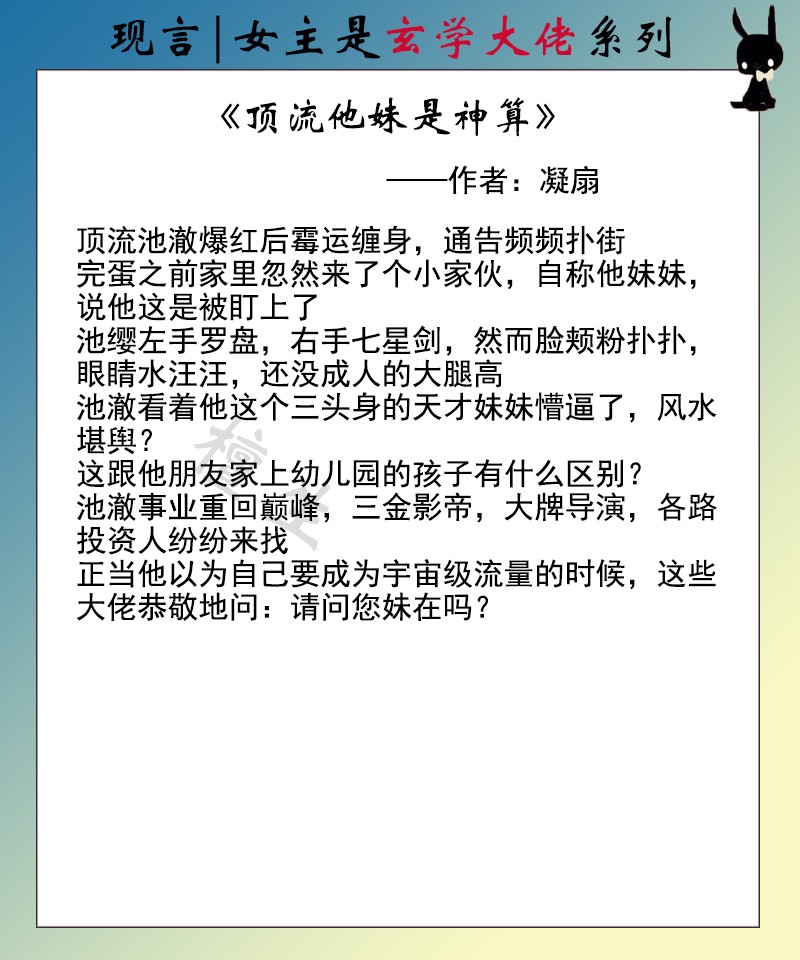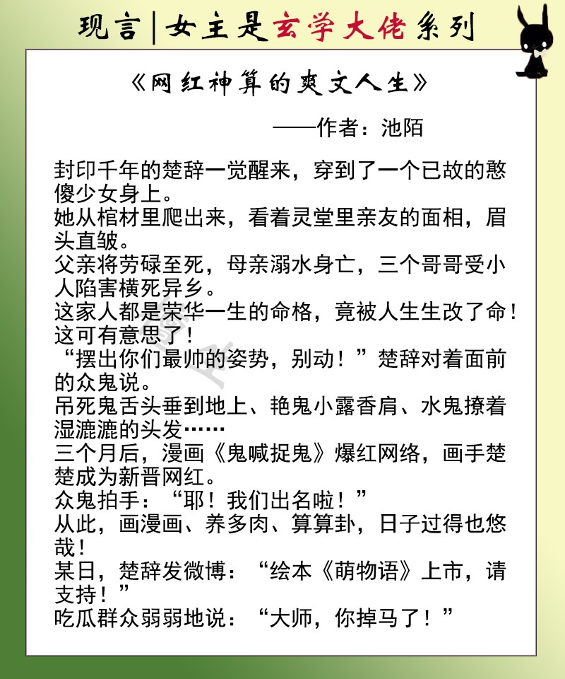 言情文推荐:大佬女主靠玄门之术走红,行善积德成传奇人物