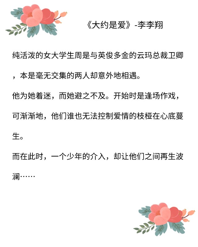李李翔的作品有甜宠也有虐,《大约是爱》很经典!