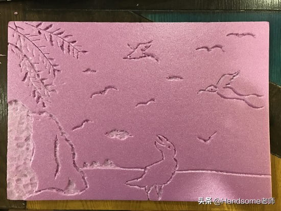 第三步:涂鸦。在吹塑纸板上涂上白色,注意要尽量多,并且均匀,不然拓印的时候会拓印不满。