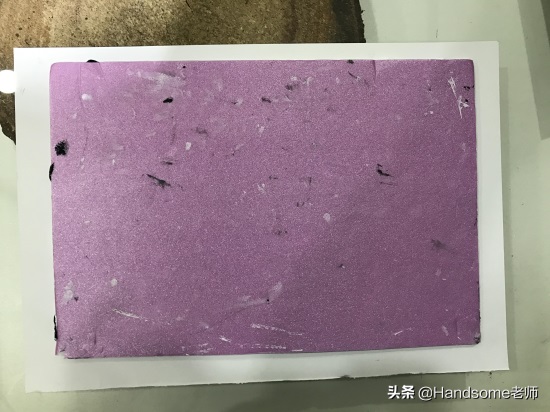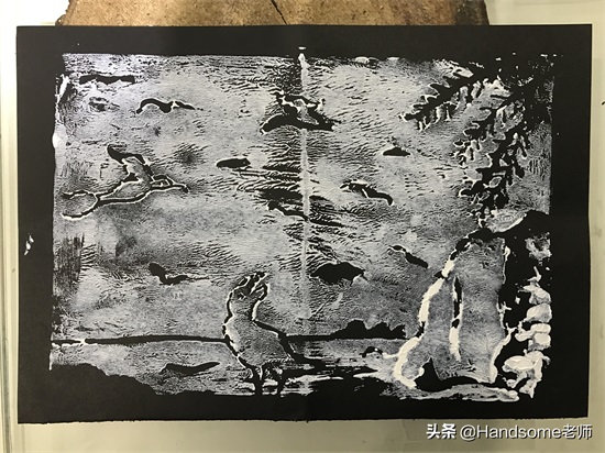 第四步:拓印。涂色完成之后,把纸板拓印在黑色卡纸上。注意要用力按压,力求清楚。