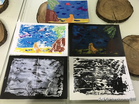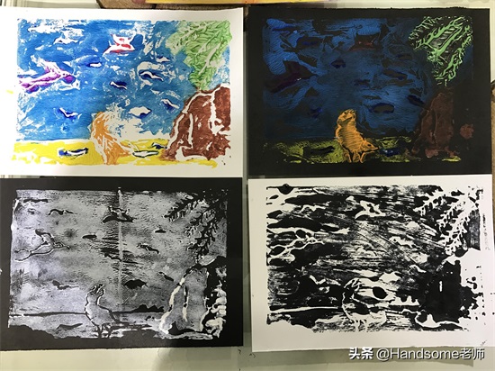 这张画最后的成品感还是很好的,但其实并不是那么好完成的,难点之一是造型,想要在吹塑纸上用铅笔把造型刻画好其实不是件简单的事情,要有耐心,也要有基本的造型能力;难点之二是思路要清晰,上色和拓印顺序不能改动,除非冲洗纸板,不然不能继续上色。