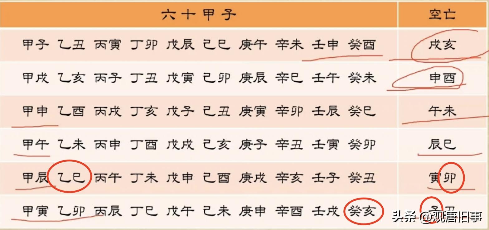 别的不说,就说这个乙巳和癸亥,乙禄在卯、癸禄在子。刚好它俩所在旬里禄位都是空,特别这个癸亥,癸是天干最后一个、亥是地支最后一个,这个时间点不但空、它还穷,岁穷月尽、六甲走完,说它“极穷时”一点都不过分。
