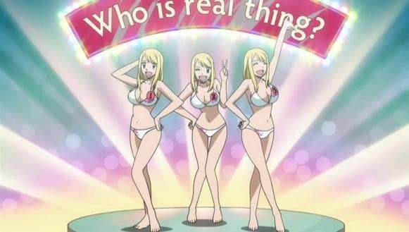 妖精的尾巴这部剧是一部热血的动漫,主要表现了友谊所带来的强大的羁绊。但是其中也是少不了一些露肉的情节,就比如大魔导演武篇里有泳装比拼,基本上我们的女主角露西可以说是基本上都要爆个衣服了!超级拼了。但是最厉害的还是我们妖精女王艾露莎,换装魔法这个设定下的她各种换装各种福利啊!