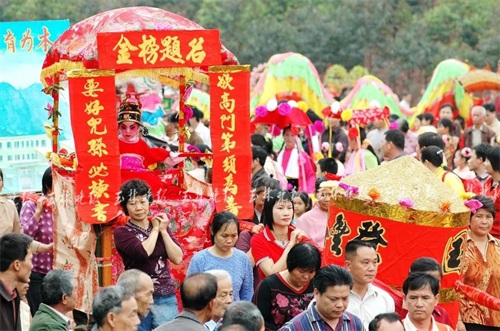 蒲塘镇寒山诞在农历二月初十,每年一小游,三年一大游,参与人数多,活动场面大,是玉林北部最大的民间民俗盛会。