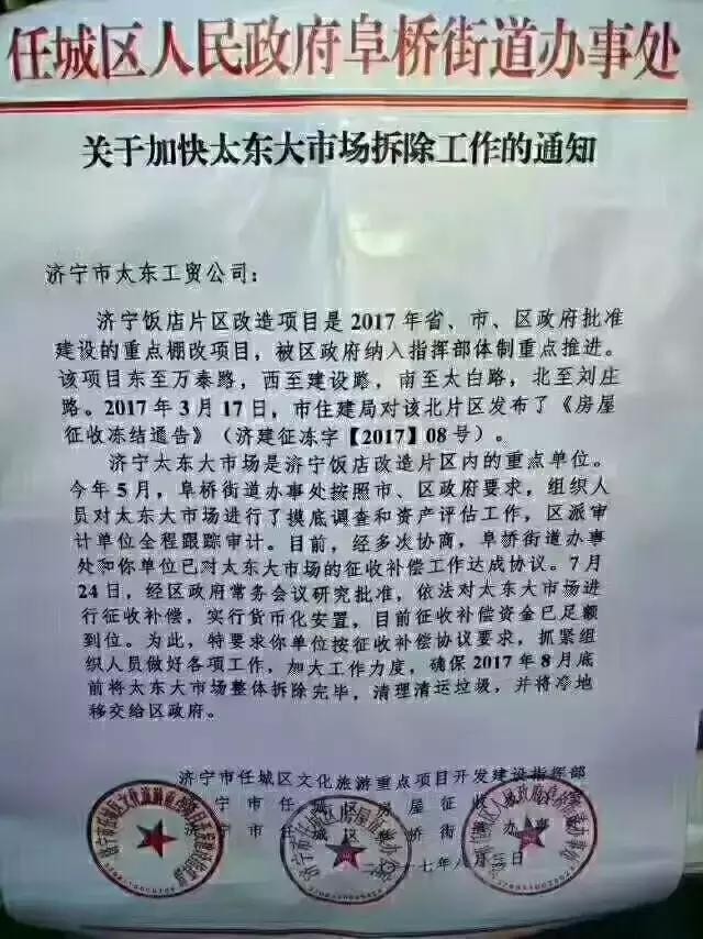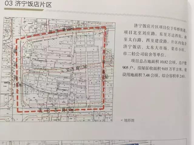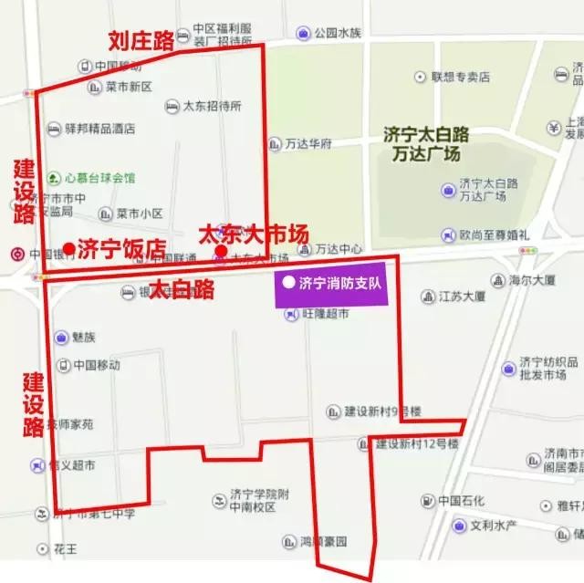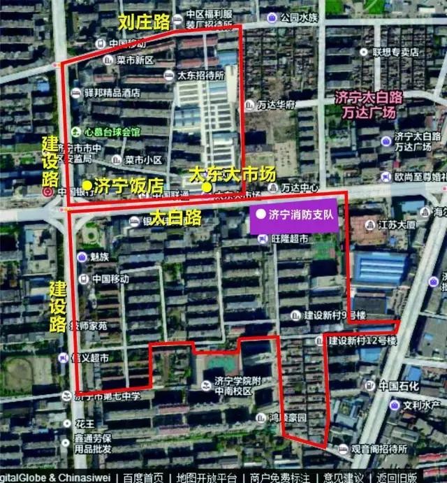 济宁饭店片区项目位于阜桥街道,项目北至刘庄路,东至万达西街,南至太白路,西至建设路。片区内包含济宁饭店、太东大市场、菜市小区、市二轻公司宿舍等单位。