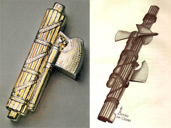 古代的罗马人觉得这种捆在一起的棍棒有万众团结一致、天下归一的含义,上头别着斧子象征着效忠皇帝的军队,于是就将其当做了是古罗马高官的权力标志。在中国也有与其地位相当的譬如:汉代的节钺、唐代的打王鞭、明清两代的尚方宝剑。