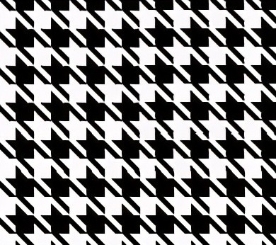 千鸟格是一种特别抽象的四角不规则的精致棋盘,格纹图案形似无数只展翅小鸟的轮廓,图案由经纬4:4双色纱线以2上2下的排列编织而成,颜色通常使用对比强烈的黑白色。