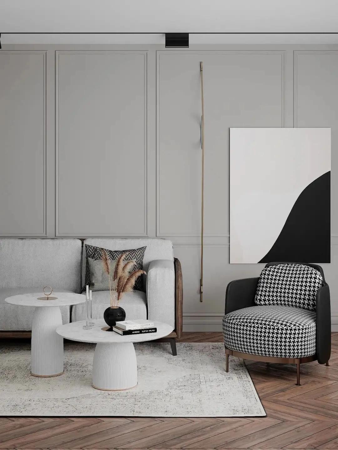 借助这个经典图案,设计偏简的空间会多一点规则古典,加一份动感迷离,恰到好处地“用最简单的单品赢最大”。而千鸟格自带的精致感也让居住氛围不过分纯粹简约,也不刻意极致奢华,简约、时髦、矜贵、雅致的就是比别人高级。