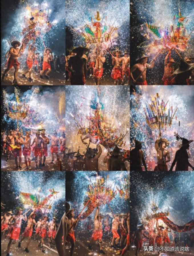 烧龙的表演过程更是一场视觉盛宴。当烟花点燃,整个龙身燃起熊熊烈火,火焰在夜空中划过一道亮丽的弧线,彷佛一颗流星划过夜空,让人陶醉其中。火光映照在周围的房屋和人群脸上,每个人的脸上都洋溢着对这一传统文化的热爱和尊敬。