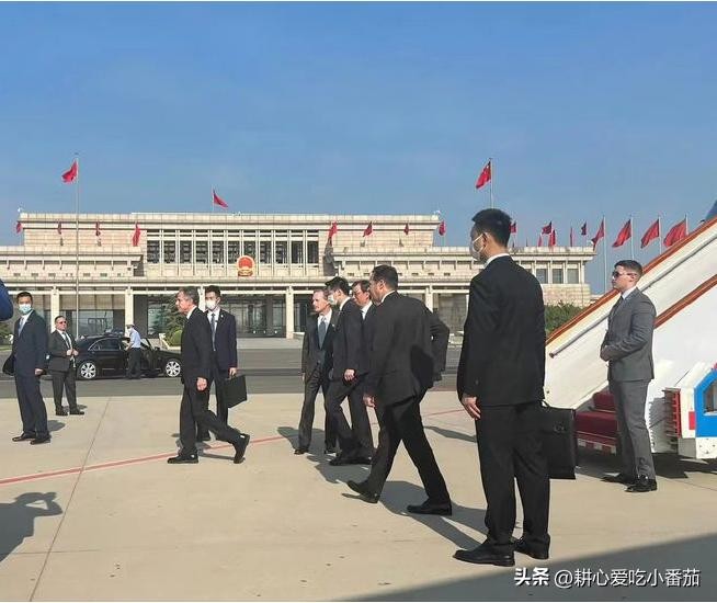 美国国务卿今日访华,现场可谓是冷冷清清,没有红毯,只有一条红线。