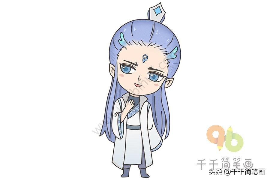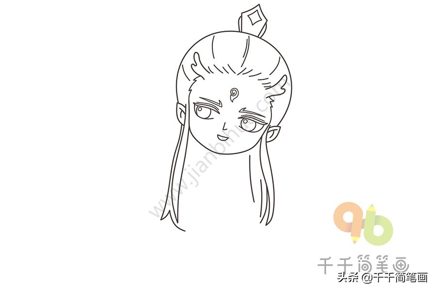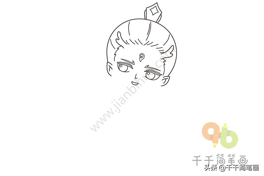 1.首先画出敖丙的龙角和头发。