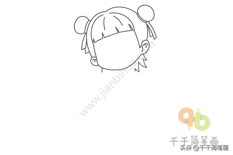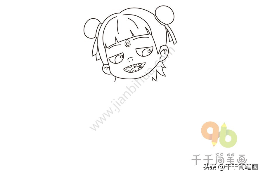 2.画出头部,头顶的两侧画出哪吒的两个辫子。