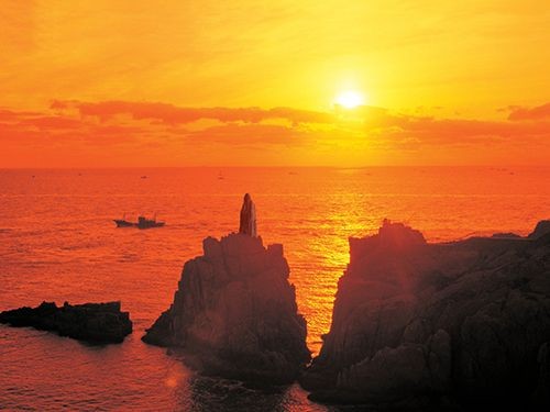 成山头景区,位于荣成市成山山脉最东端故而得名,被誉为“太阳升起的地方”,有“中国的好望角”之称。景区三面环海,一面接陆,群峰苍翠延绵,大海浩瀚碧蓝,峭壁巍然,巨浪飞雪,气势恢宏万千,是理想的旅游避暑胜地。一九八八年被被国务院批准为“国家级风景名胜区”。