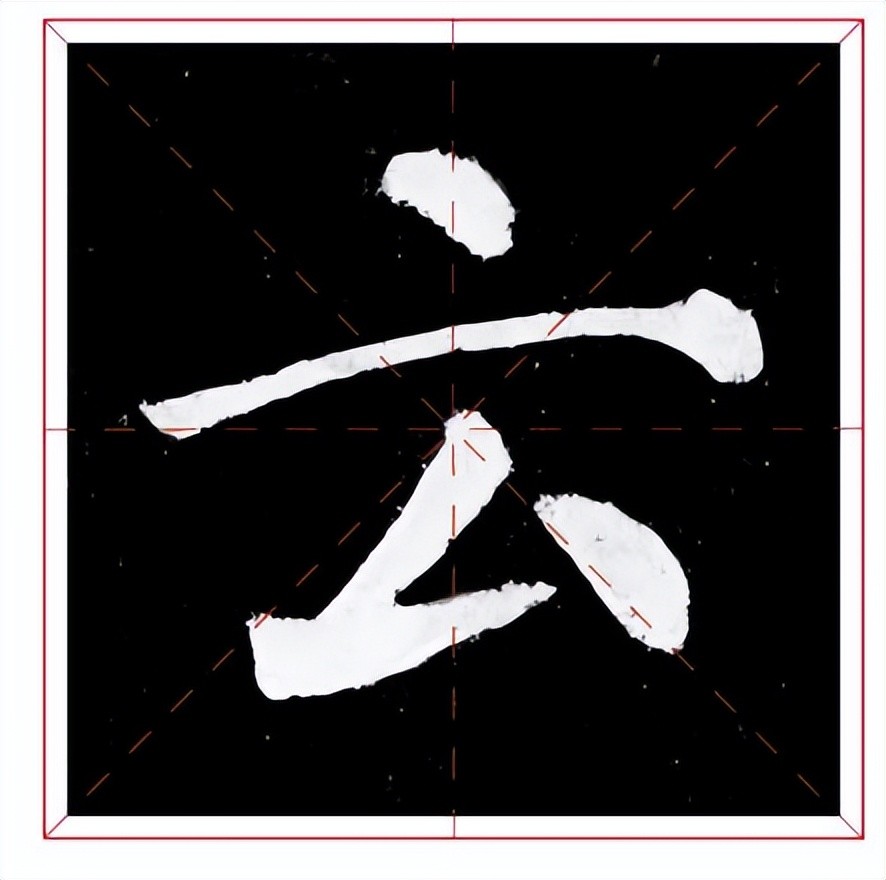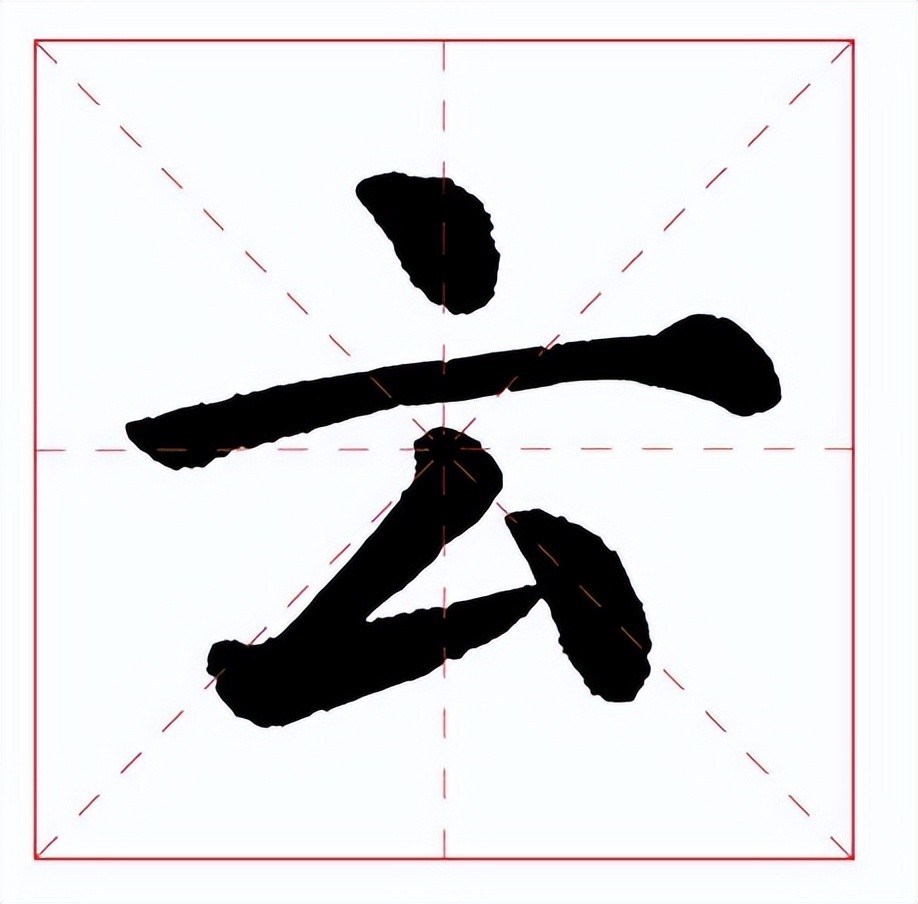 “云”字外形扇而宽。上点居中,长横舒展撇折的撒画起笔与上点对正,下点稍长,与撇画呈对应之势。